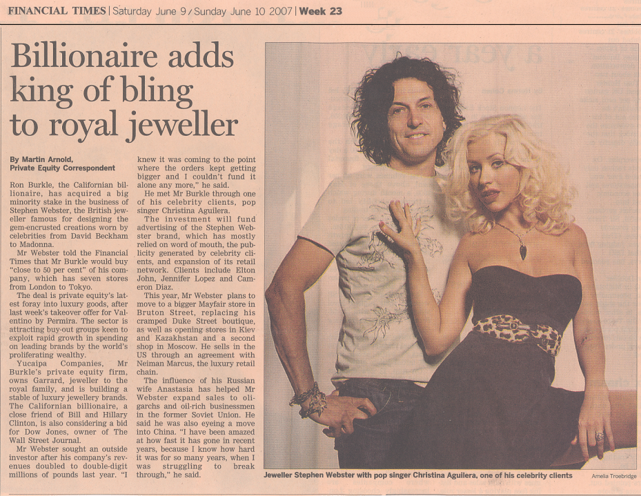 NELLEN advised the shareholders of luxury jeweller Stephen Webster Limited on its sale to the holding company of Garrard.Financial Times